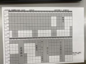 冬休みの時間を有効に活用し、苦手克服や学力アップを目指す冬期講習の受付がスタートしました! 当塾では、写真の予定表の白い時間帯で授業を受けていただけます。