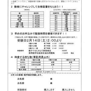 対策授業 2/2(火)、2/4(木)、2/5(金)、2/9(火)、2/12(金)