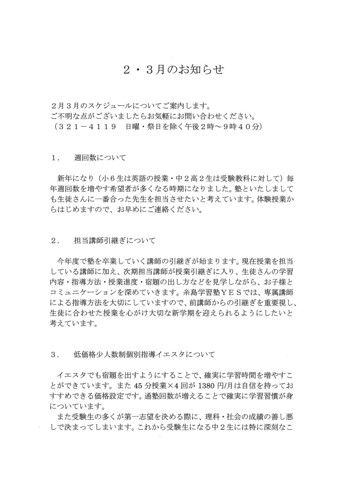 2・3月のお知らせ